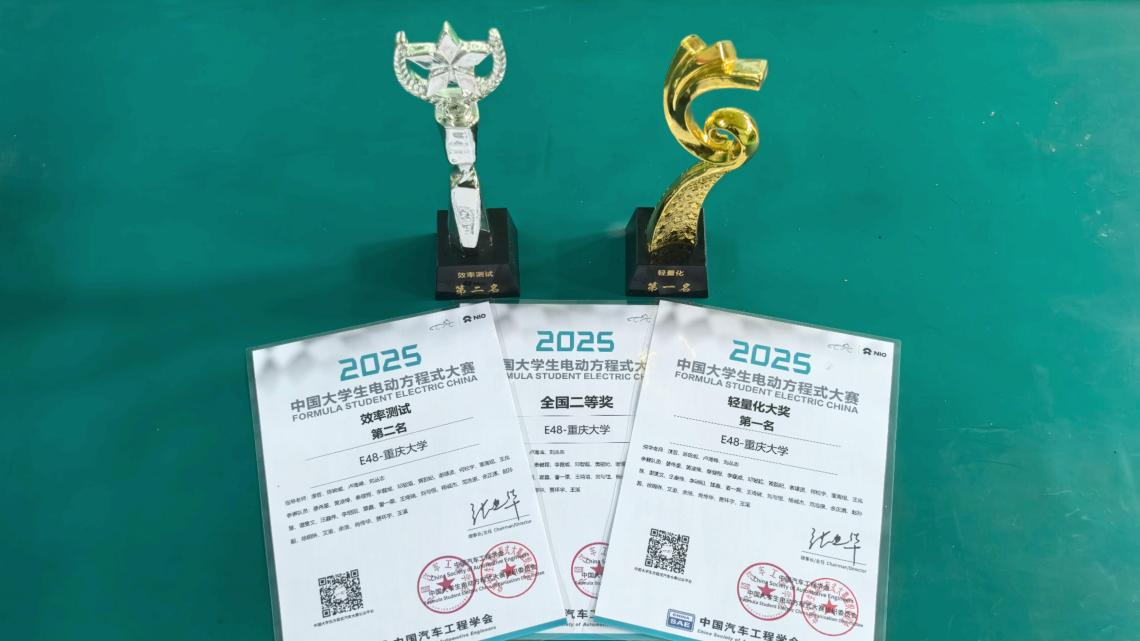 11月23日,2025“蔚来杯”中国大学生电动方程式大赛在安徽省合肥市骆岗公园顺利落幕。重庆大学方程式赛车队纯电组再续辉煌,综合成绩进入全国前20名,在轻量化大奖角逐中,重庆大学方程式赛车队夺得全国第一,并刷新轻量化纪录;效率测试获得全国亚军。两项核心技术奖项的突破,标志着重庆大学在电动赛车轻量化设计与能源效率管理领域达到国内高校领先水平,也创造了重庆大学在电动方程式赛事的历史最佳战绩。至此2025赛季方程式赛车队油、电车均为在对应组别的历史最轻赛车。